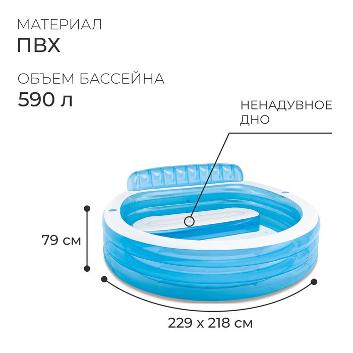 Бассейн надувной с подголовником, 229 х 218 х 79 см, от 3 лет, 57190NP INTEX