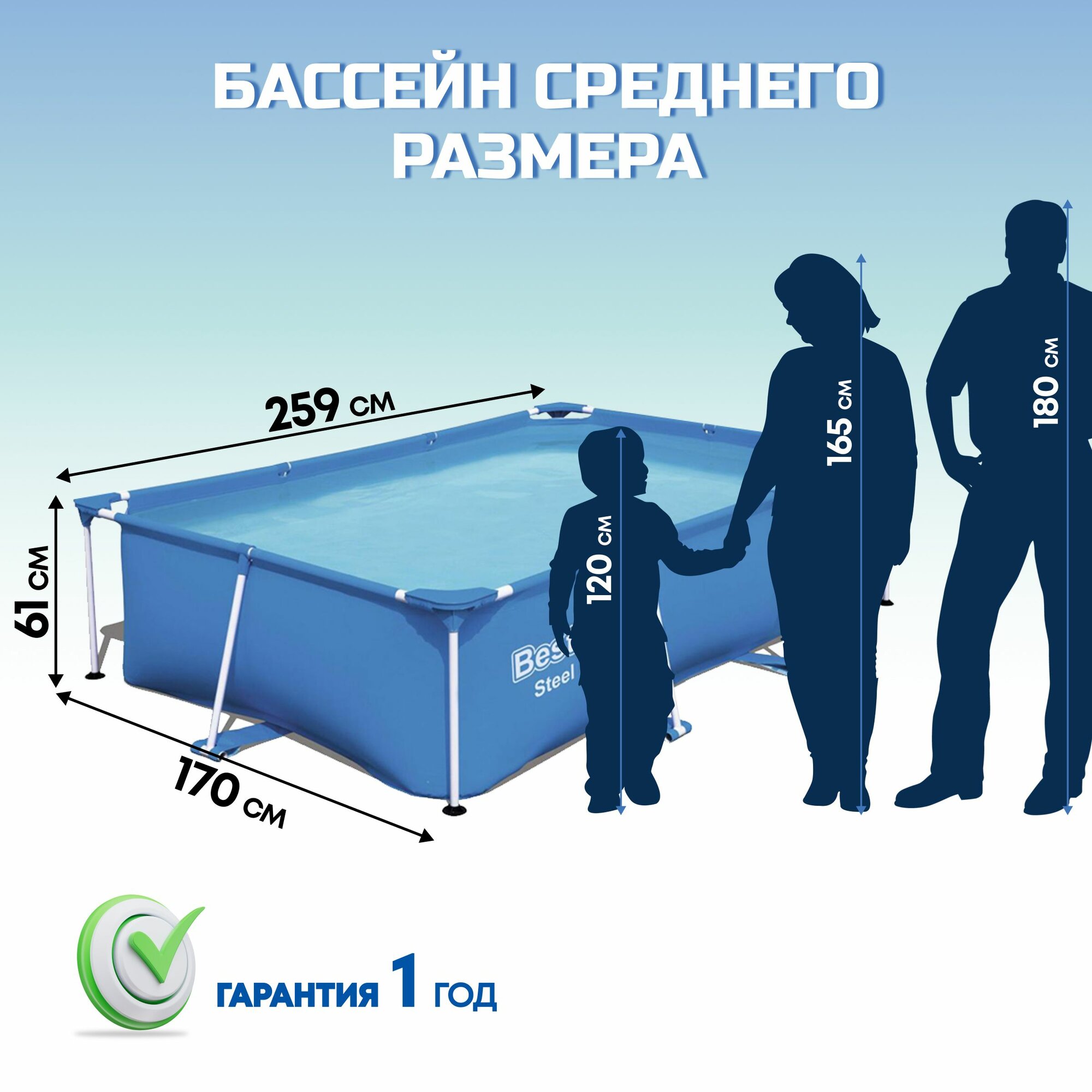 Бассейн каркасный прямоугольный Bestway, Steel Pro, 259х170х61 см, 2300 л