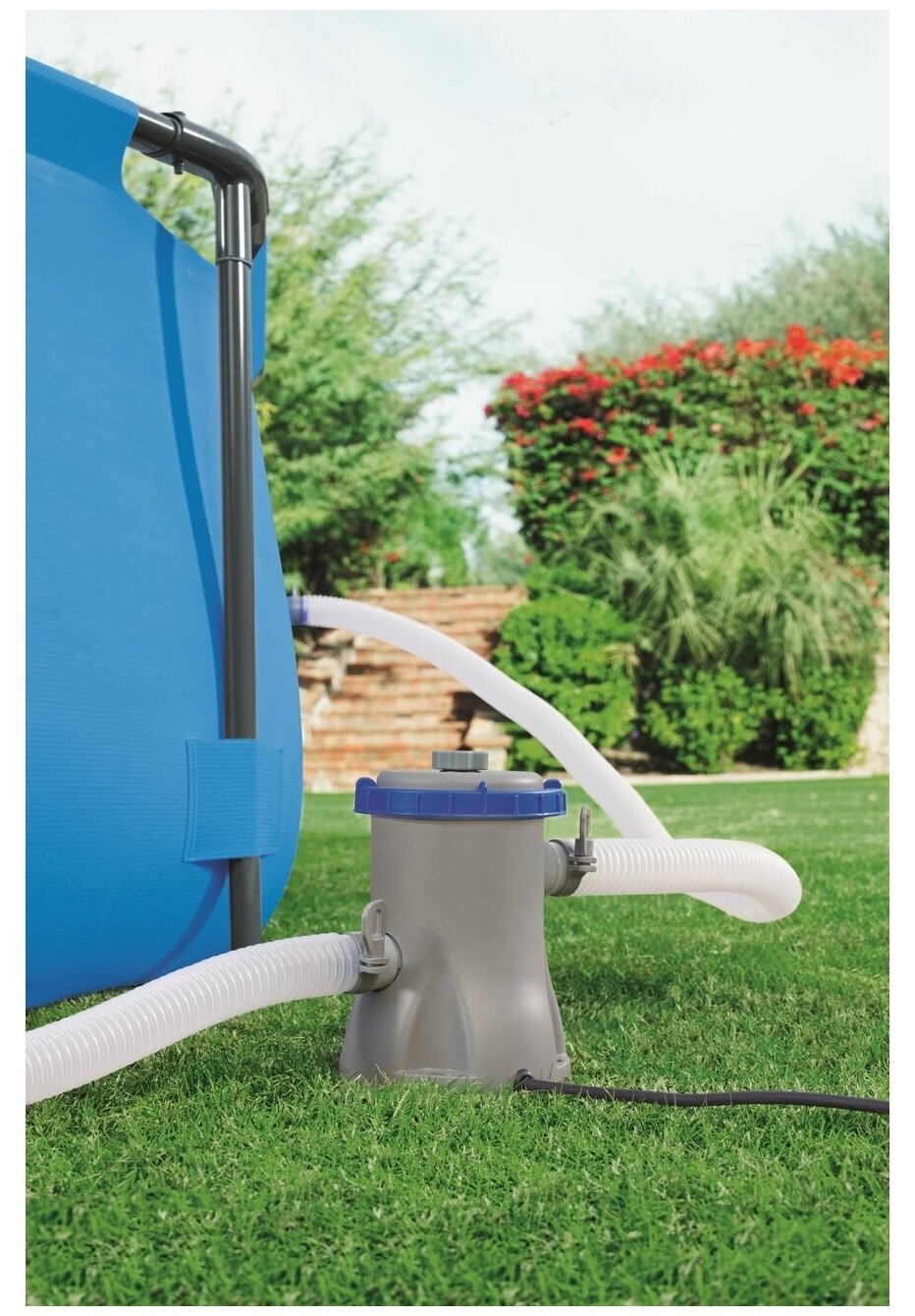 | Минусы: | Нет четкой инструкции, как стыковать металлический каркас. Нет лестницы, фильтра и тента (не входили в стоимость) |