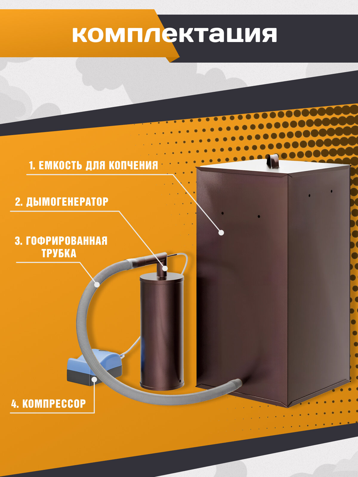 Коптильня холодного копчения "Дым Дымыч" 01Б, дымогенератор, 50 л, коричневая 1333763