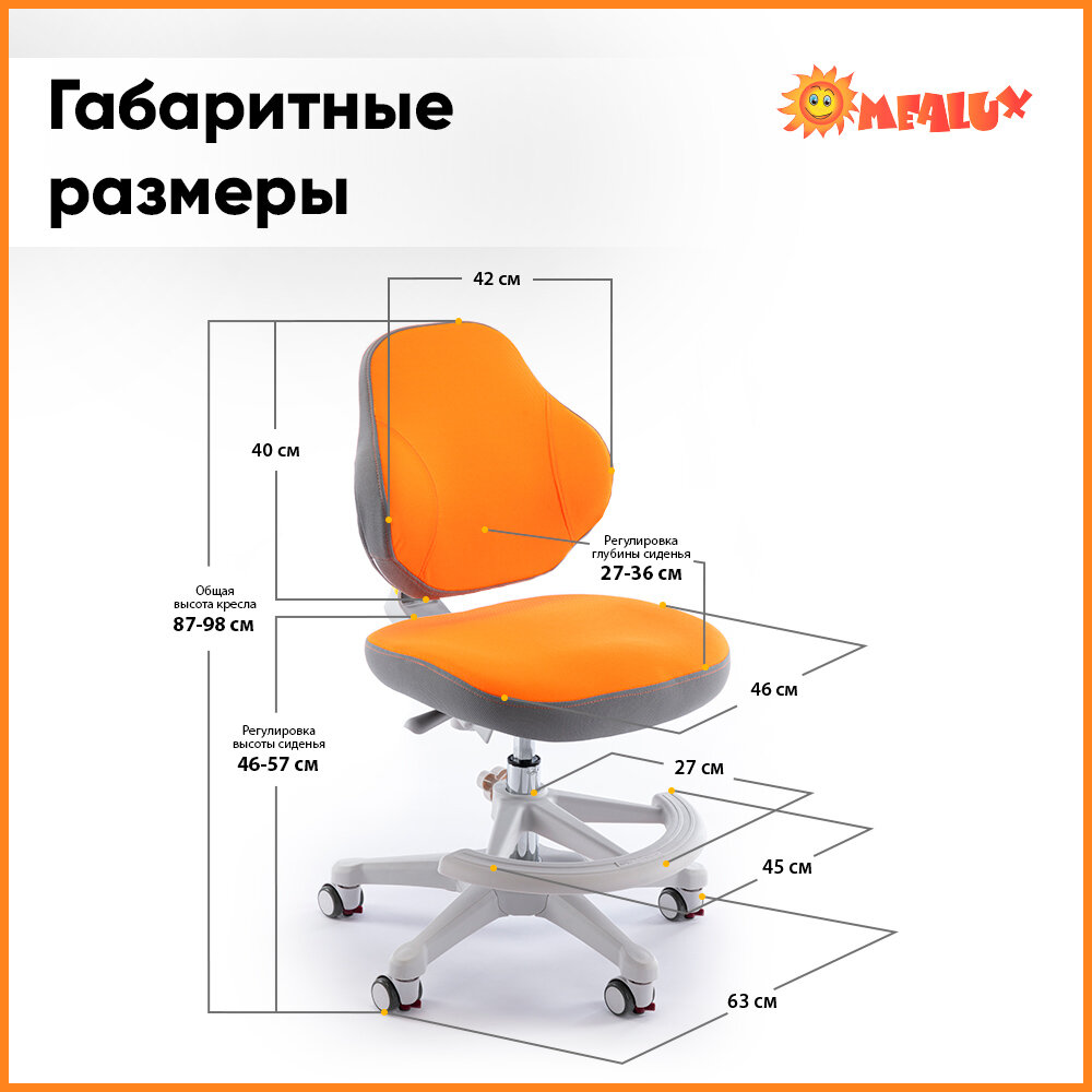 Детское кресло ErgoKids GT Y-405 OR ortopedic обивка оранжевая однотонная