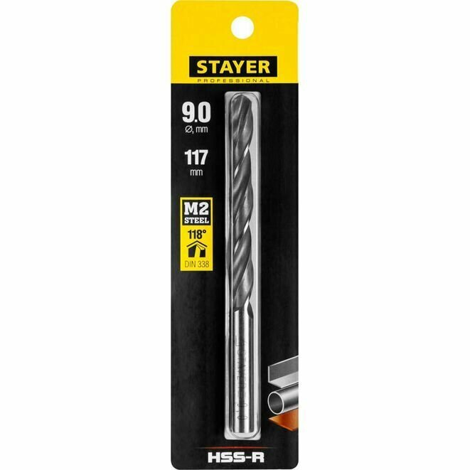Купить Сверло спиральное по металлу Professional, STAYER 9 х 125 мм