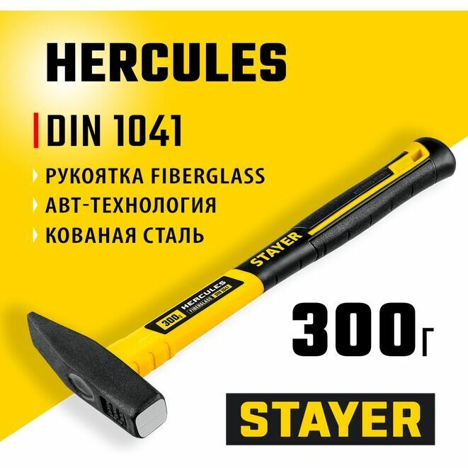 Молоток слесарный с фиберглассовой рукояткой Hercules STAYER 200 г, Professional