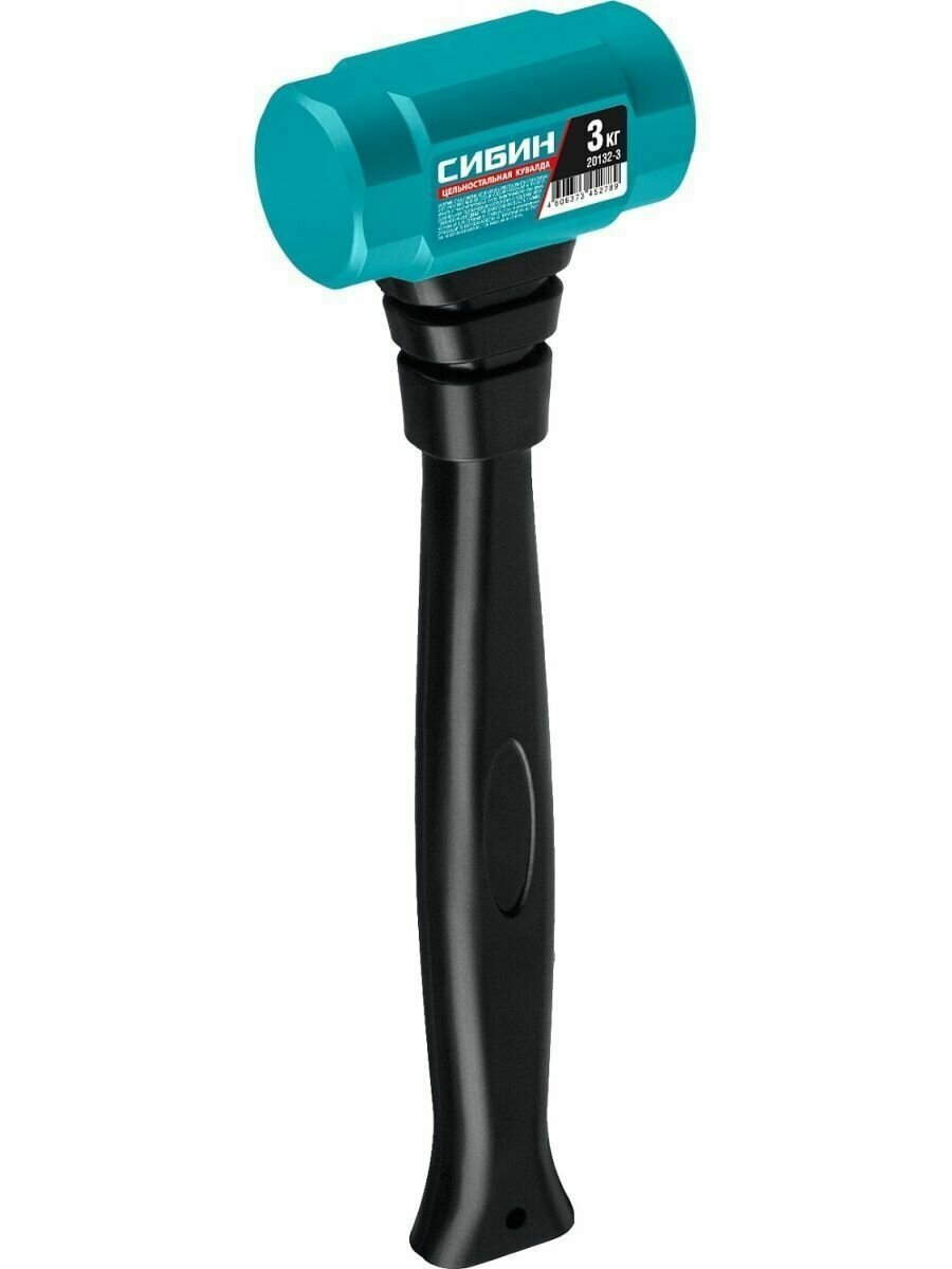 СИБИН 3 кг, 360 мм, цельностальная кувалда с удлинённой обрезиненной рукояткой (20132-3)