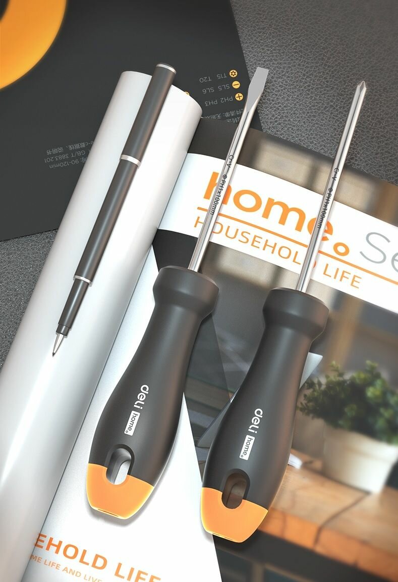 Набор отверток ";Home Series"; Deli HT1004 4шт SL5x100+SL6x150+PH1x100+PH2x150 Эксклюзивный дизайн.
