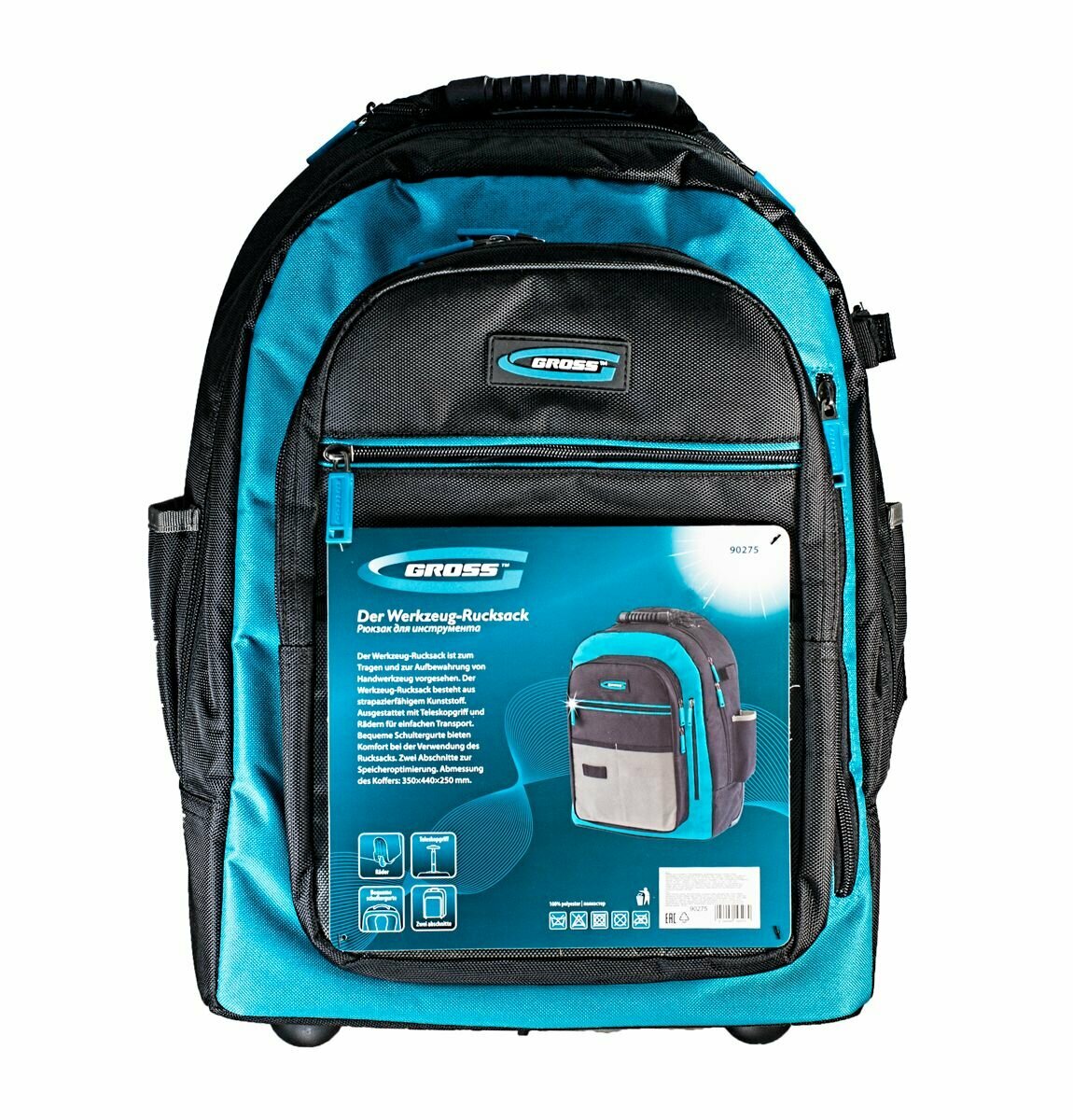 Купить Рюкзак для инструмента, 440х350х250мм, выдвижная рукоятка, колеса, Gross 90275