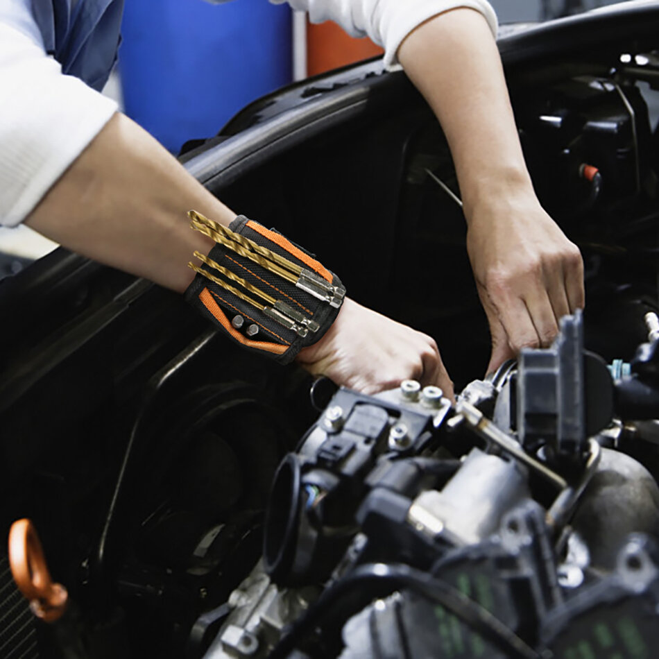 Купить Магнитный браслет строительный с неодимовыми магнитами на запястье / Держатель магнитный органайзер для инструментов и саморезов с карманами