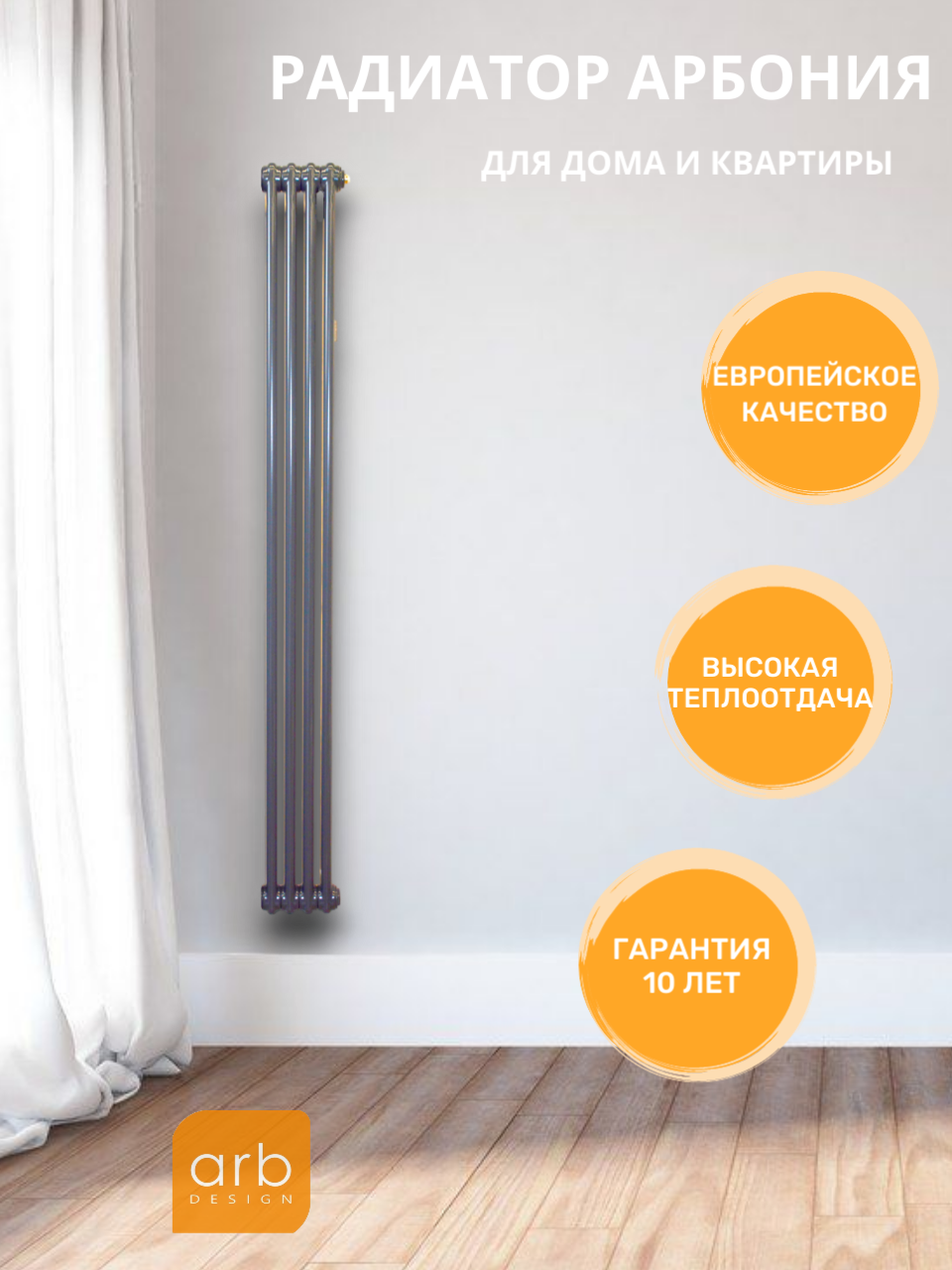 Трубчатый радиатор Arbonia 2180 х 4 секций, боковое подключение, цвет чёрный (RAL7016)