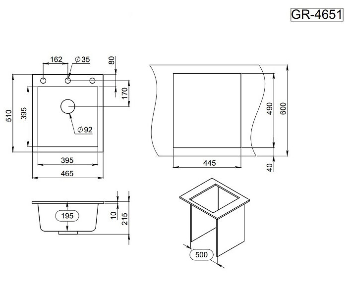 4651, песок, мойка кухонная Granula, одна чаша, 465*510*195 мм