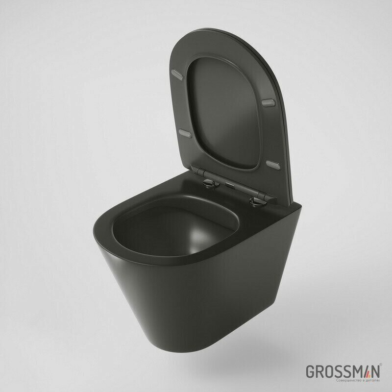 Купить Унитаз подвесной Grossman GR-4477BMS безободковый с тонкой крышкой, черный матовый
