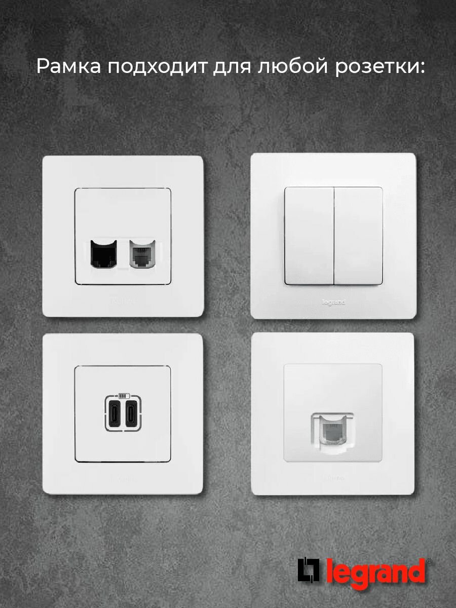 | Плюсы: | Идеально подходит к выключателям и розеткам legrand серии этика. Пластиковые языки крепления очень крепко крепятся в корпус. |