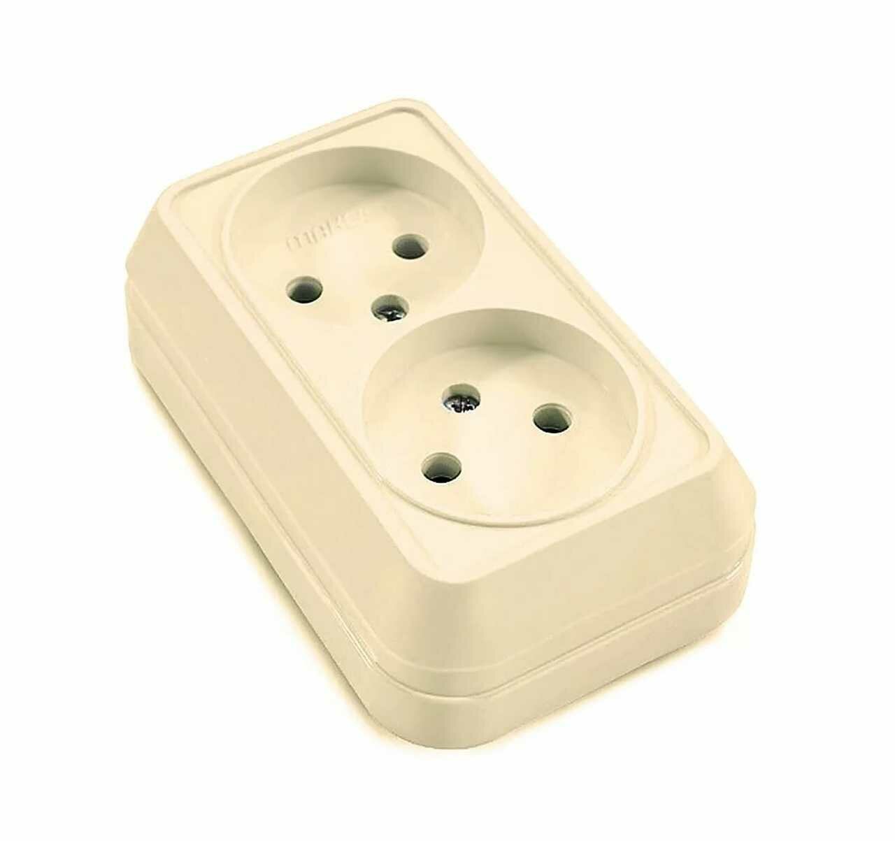 Розетка двухместная открытой установки с заземлением MAKEL 45282 220В 16А 3.5 кВт кремовый
