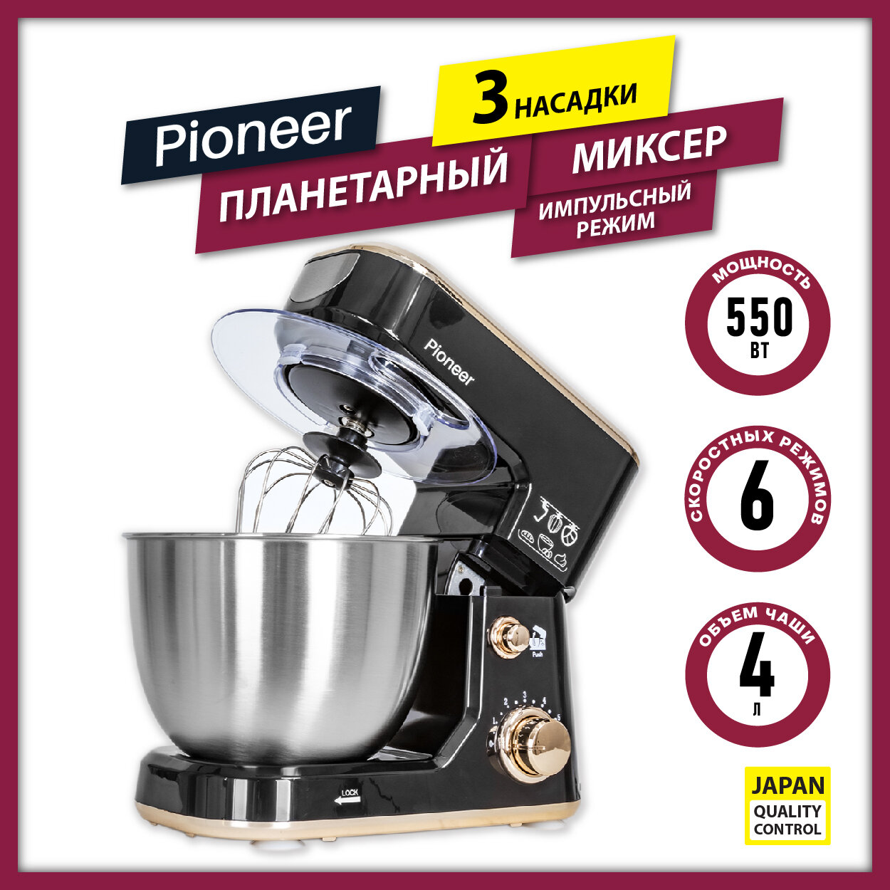 Миксер планетарный с чашей из нержавеющей стали Pioneer MX326 black, 6 скоростей, 3 насадки, защита двигателя от перегрева, 550 Вт интересное: