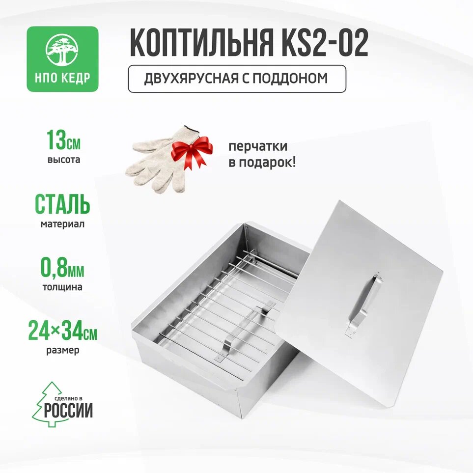 Коптильня двухъярусная Кедр 380х280х170 мм с поддоном для сбора жира, сталь 0,8 мм, KS2-02 .