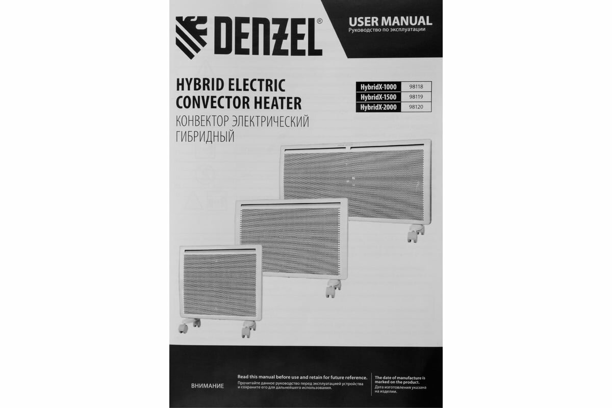 Конвектор гибридный электрический Denzel HybridX-1000 ИК нагреватель, цифровой термостат 98118