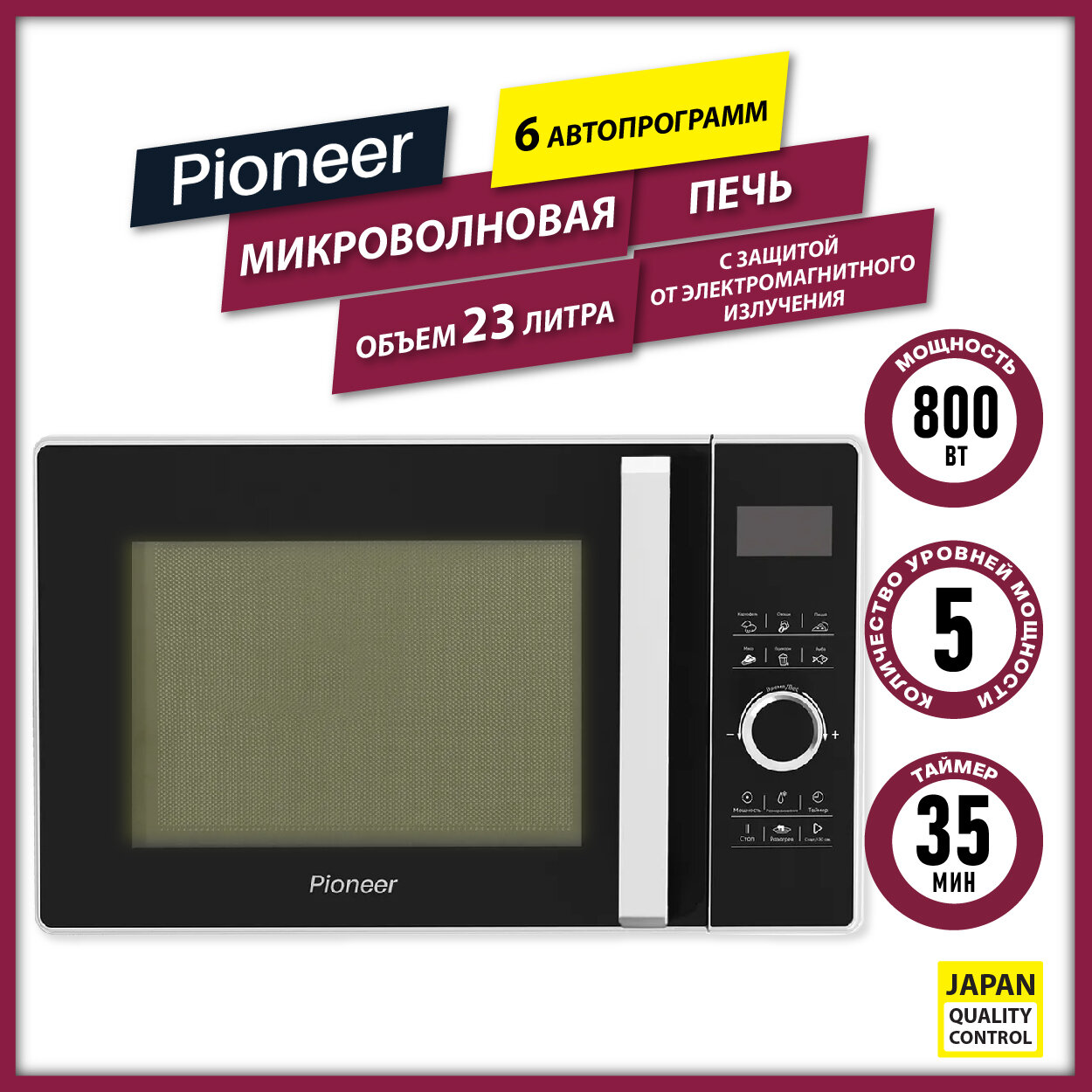 Микроволновая печь Pioneer с защитой от электромагнитного излучения, 23л, 800Вт, LED дисплей, 6 программ, сенсорное управление, гарантия 2 года