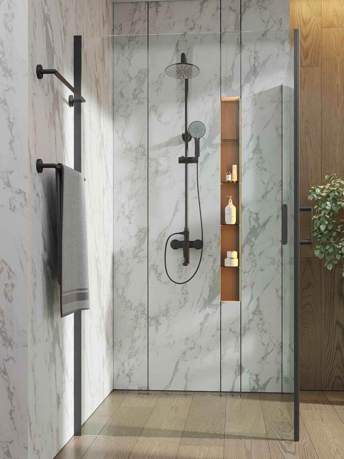 Orange E04-100tb душевой уголок из распашных универсальных дверей, черный