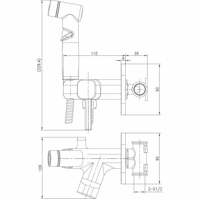 | Комплектация | душевой шланг / держатель для душа / крючок |