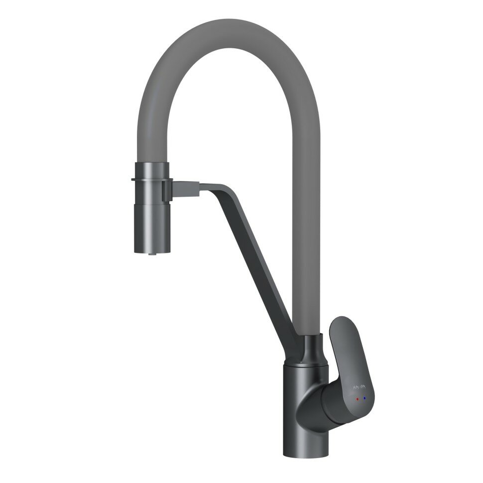 Смеситель для кухни AM.PM Like гибкий серый/черный излив, с фильтром для питьевой воды, технология Fresh Boost 2 в 1 управление одной ручкой, латунь