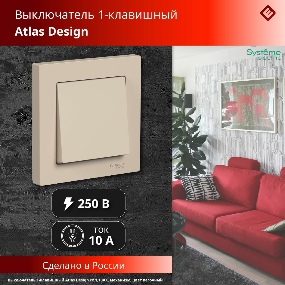 Купить ATLASDESIGN 1-клавишный выключатель, сх.1, 10АХ, механизм, песочный