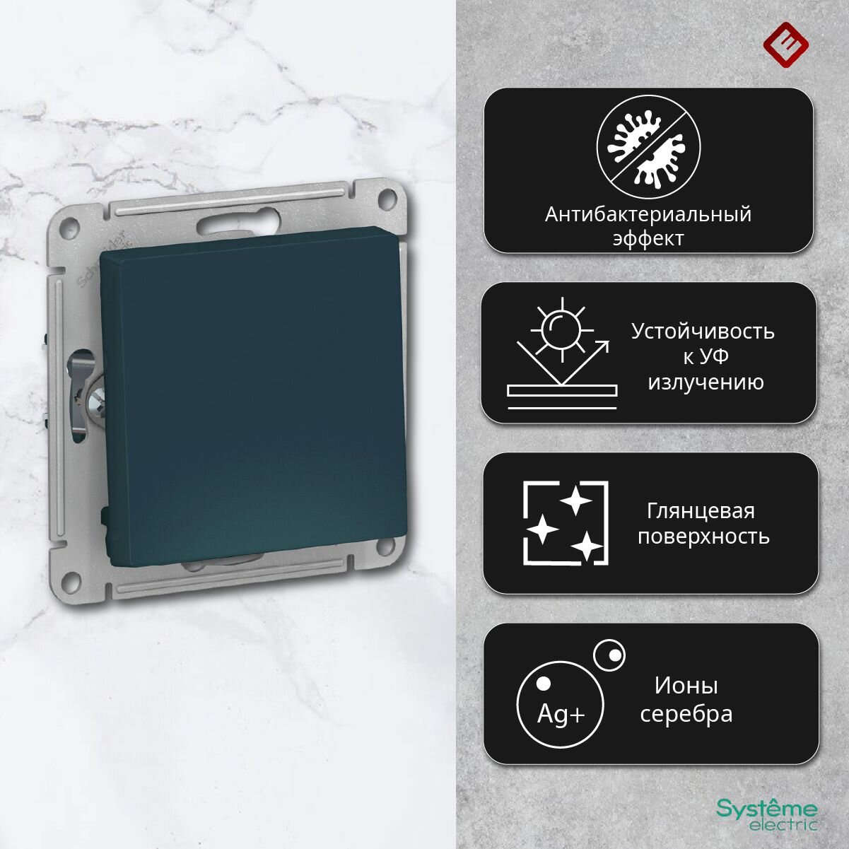 Выключатель электрический Systeme Electric Atlas Design 1-клавишный, 10А, 10 AX, Аквамарин ATN001111 - 10 шт.