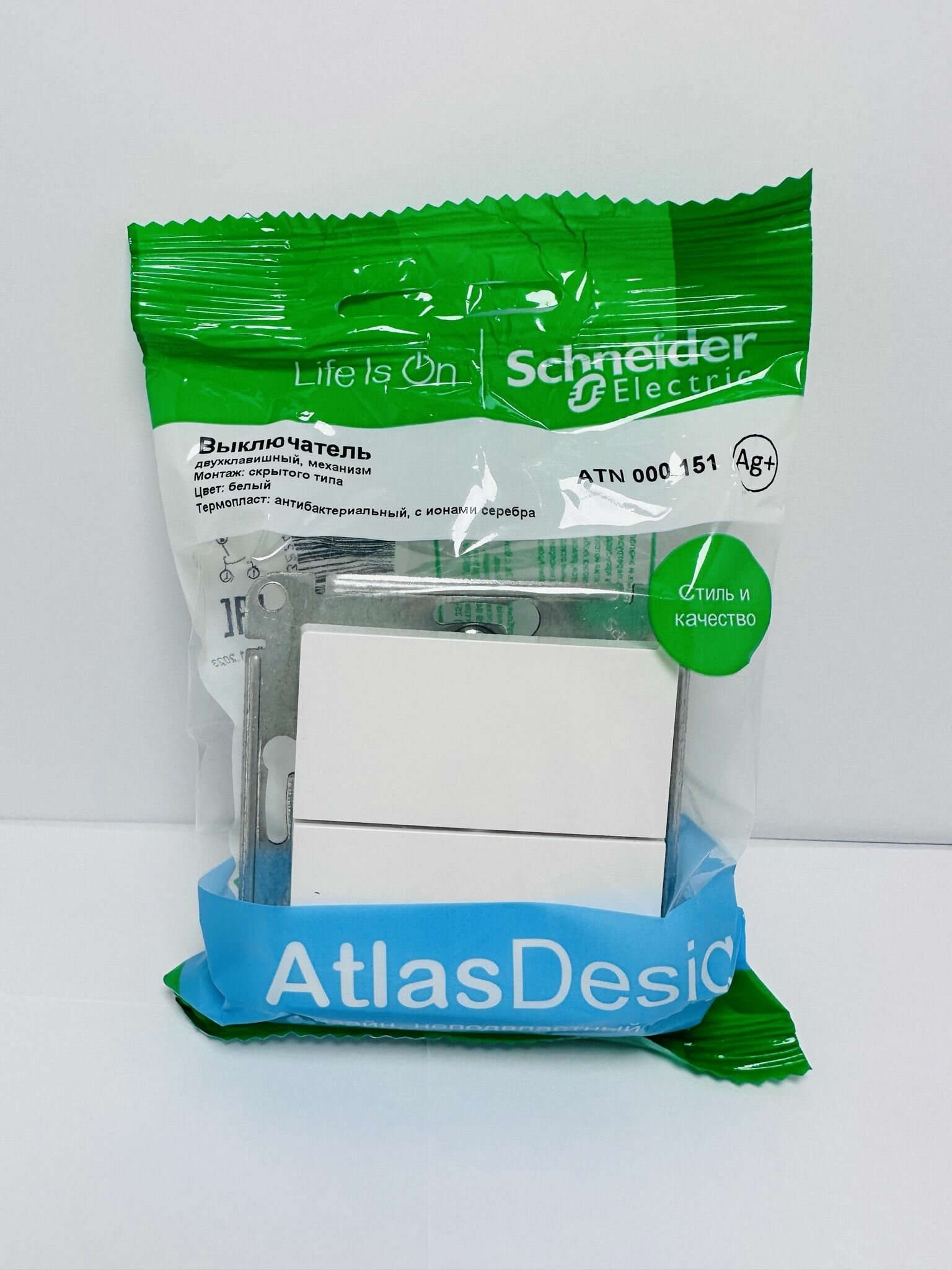 Выключатель Schneider Electric AtlasDesign двухклавишный 10А Белый ATN000151 - 5штук