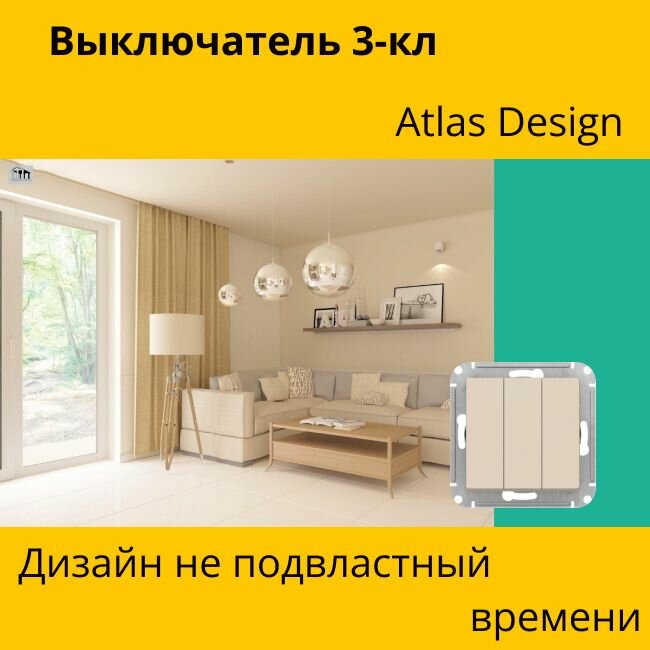 Выключатель трехклавишный AtlasDesign сх.1+1+1, 10АХ, Бежевый, ATN000231 1шт