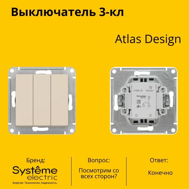 Сохранитьвыключатель 3-клавишный SCHNEIDER ELECTRIC Atlas Design 10А бежевый интересное: