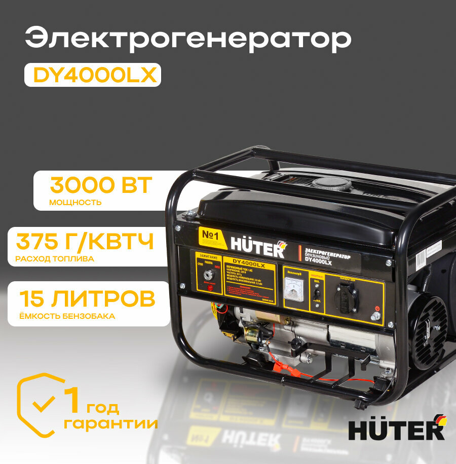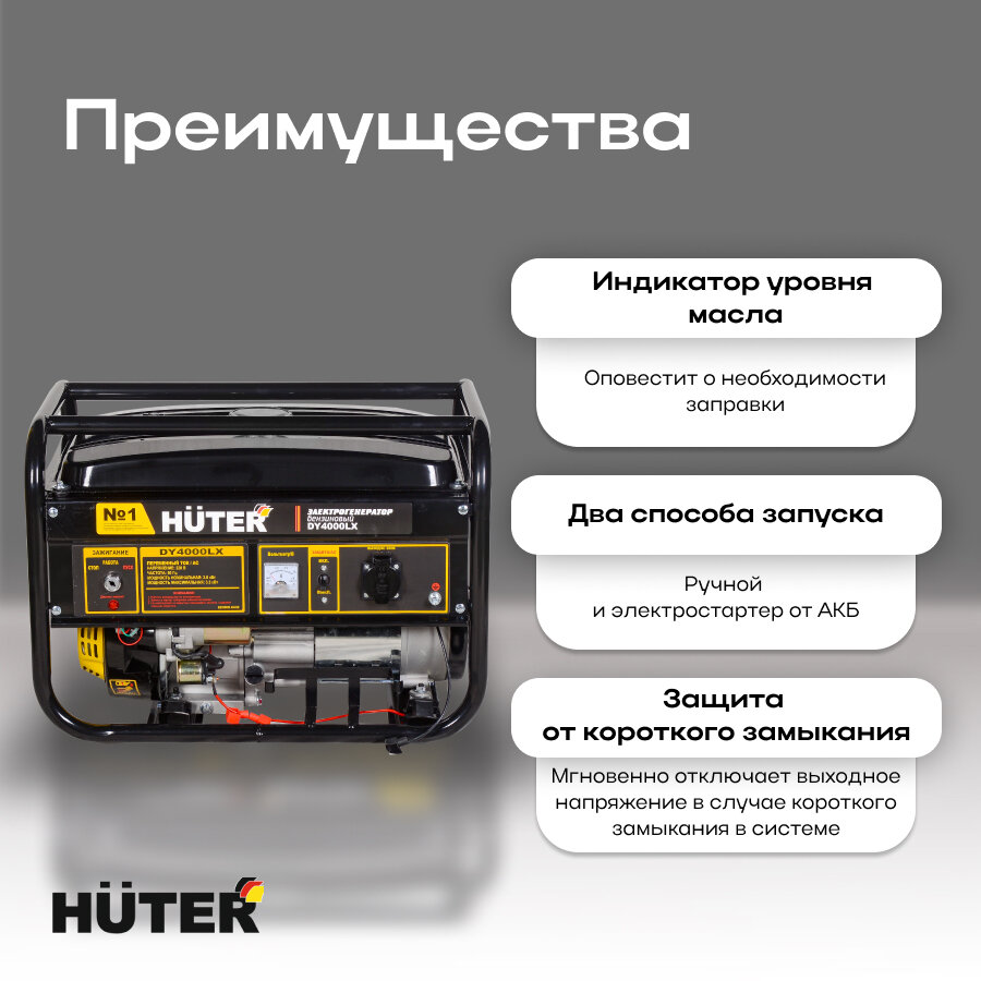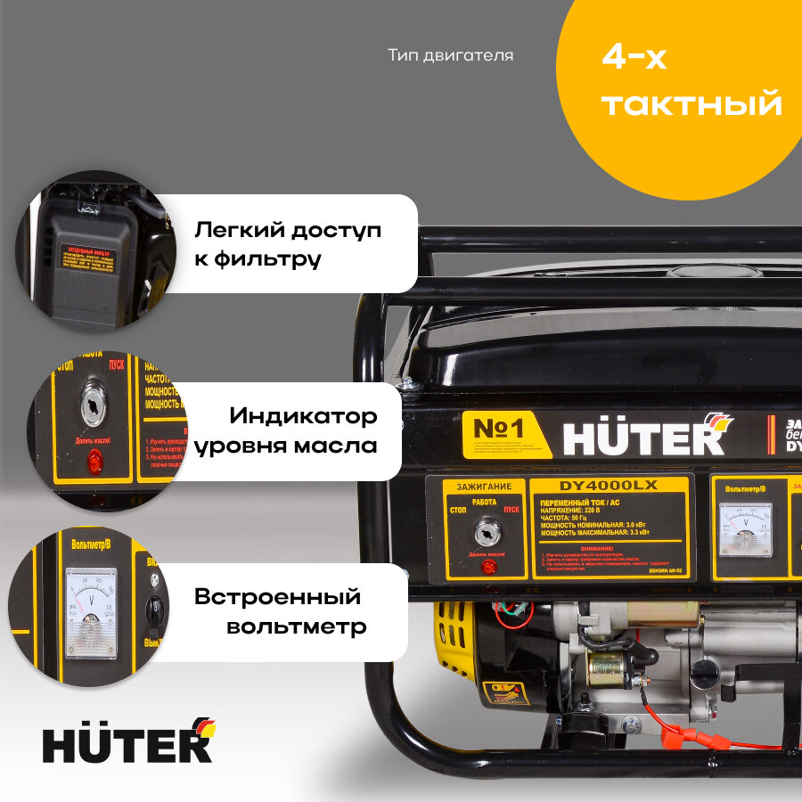 Купить Бензиновый генератор HUTER DY4000LX с электростартером и максимальной мощностью 3300 Вт