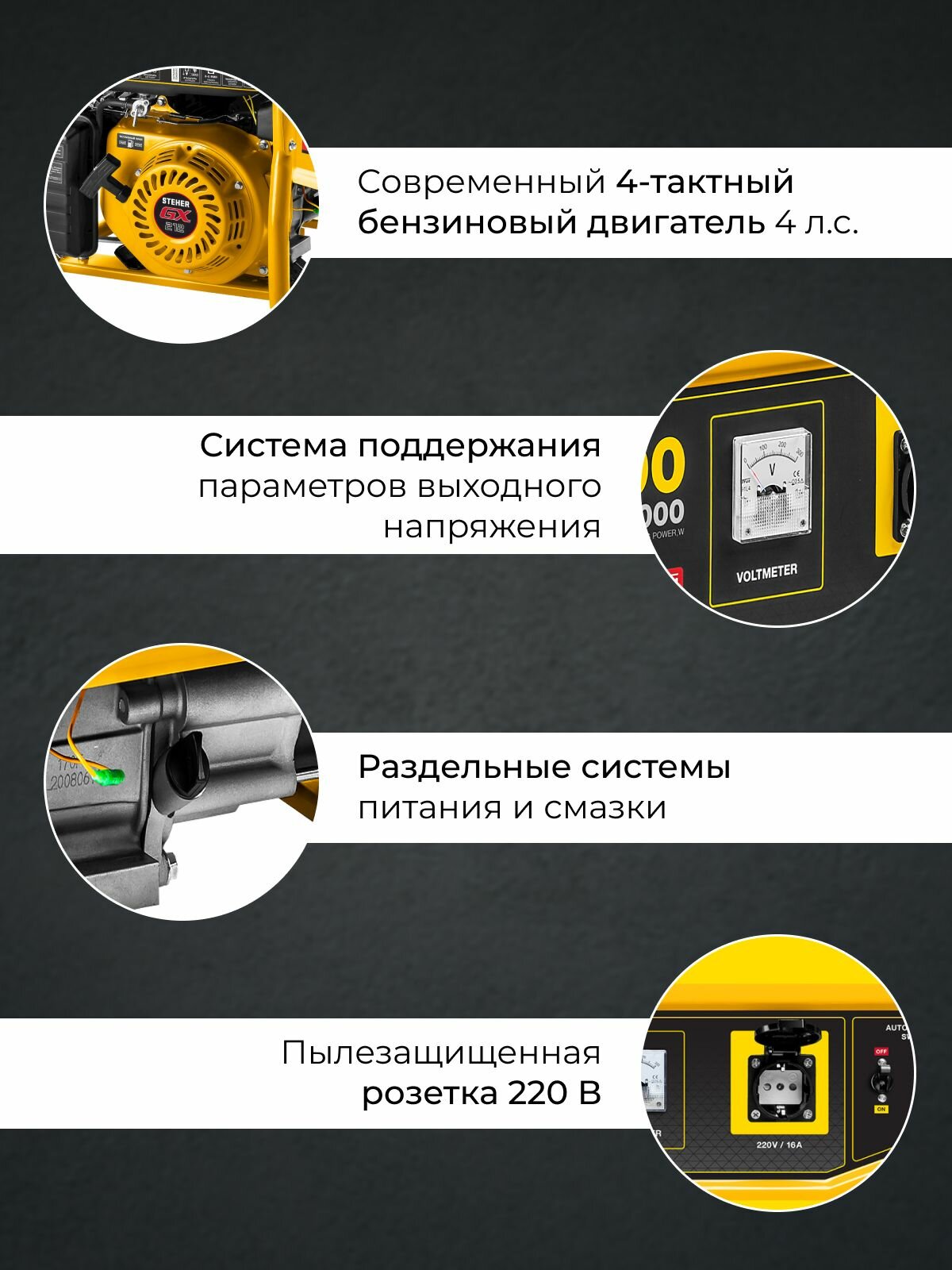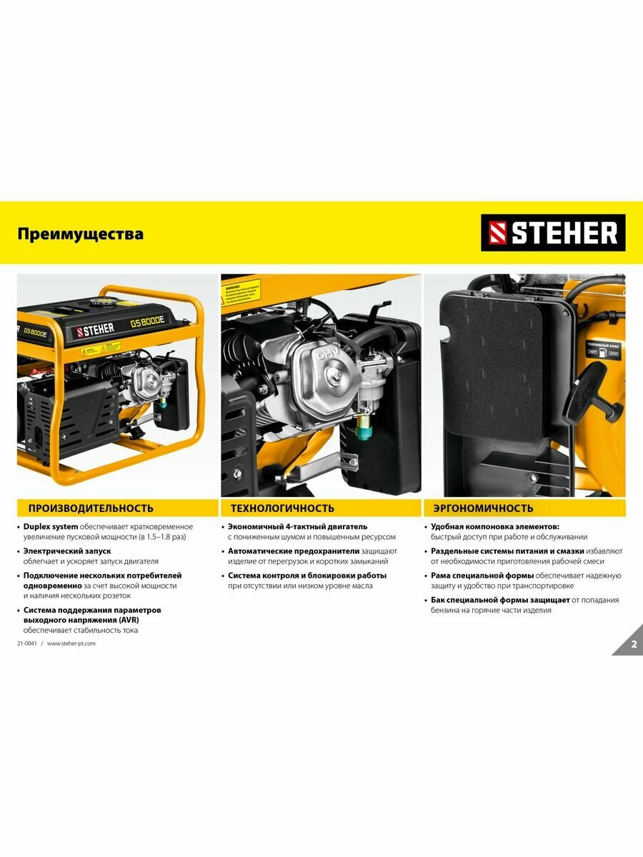STEHER GS-1500 бензиновый генератор, 1200 Вт, 4 лс двигатель, 220 В, 25 кг