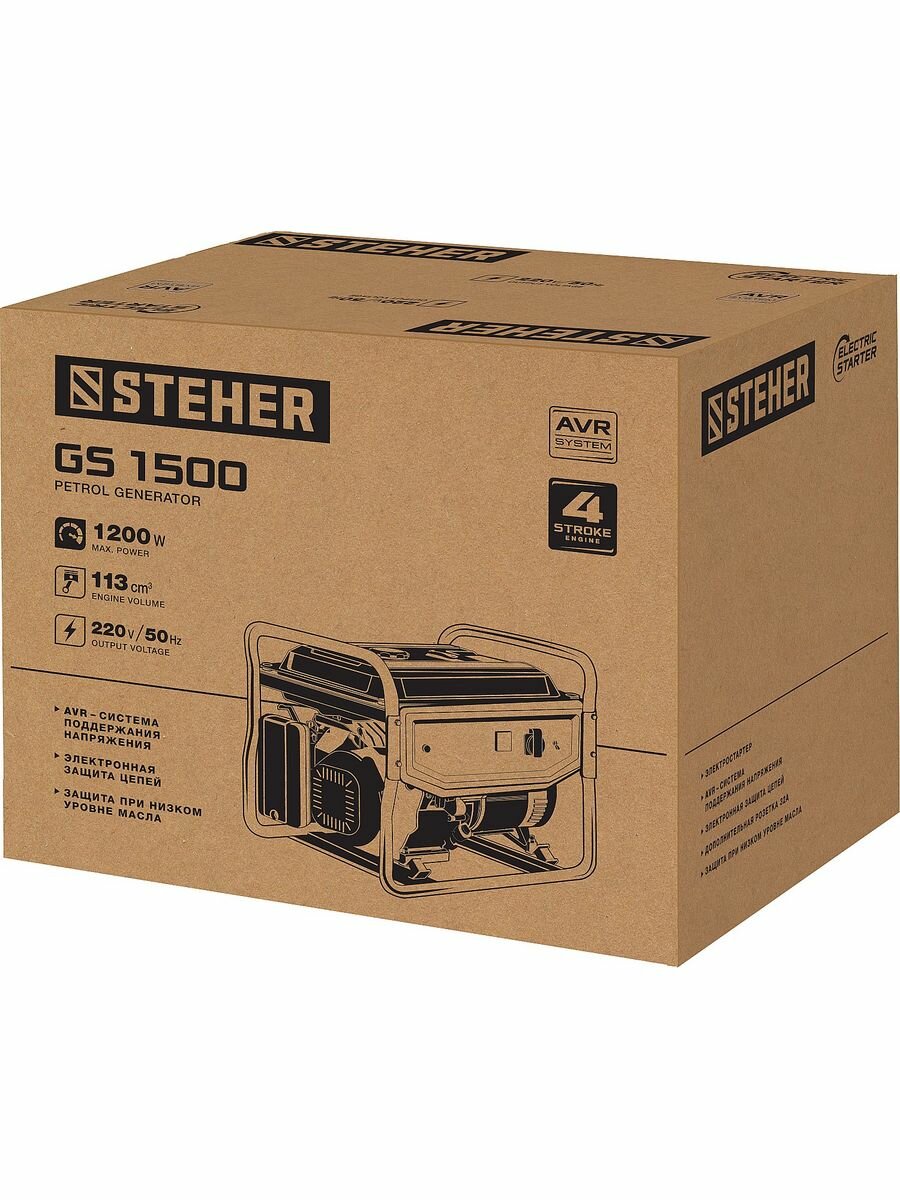 GS-1500 бензиновый генератор, 1200 Вт, STEHER