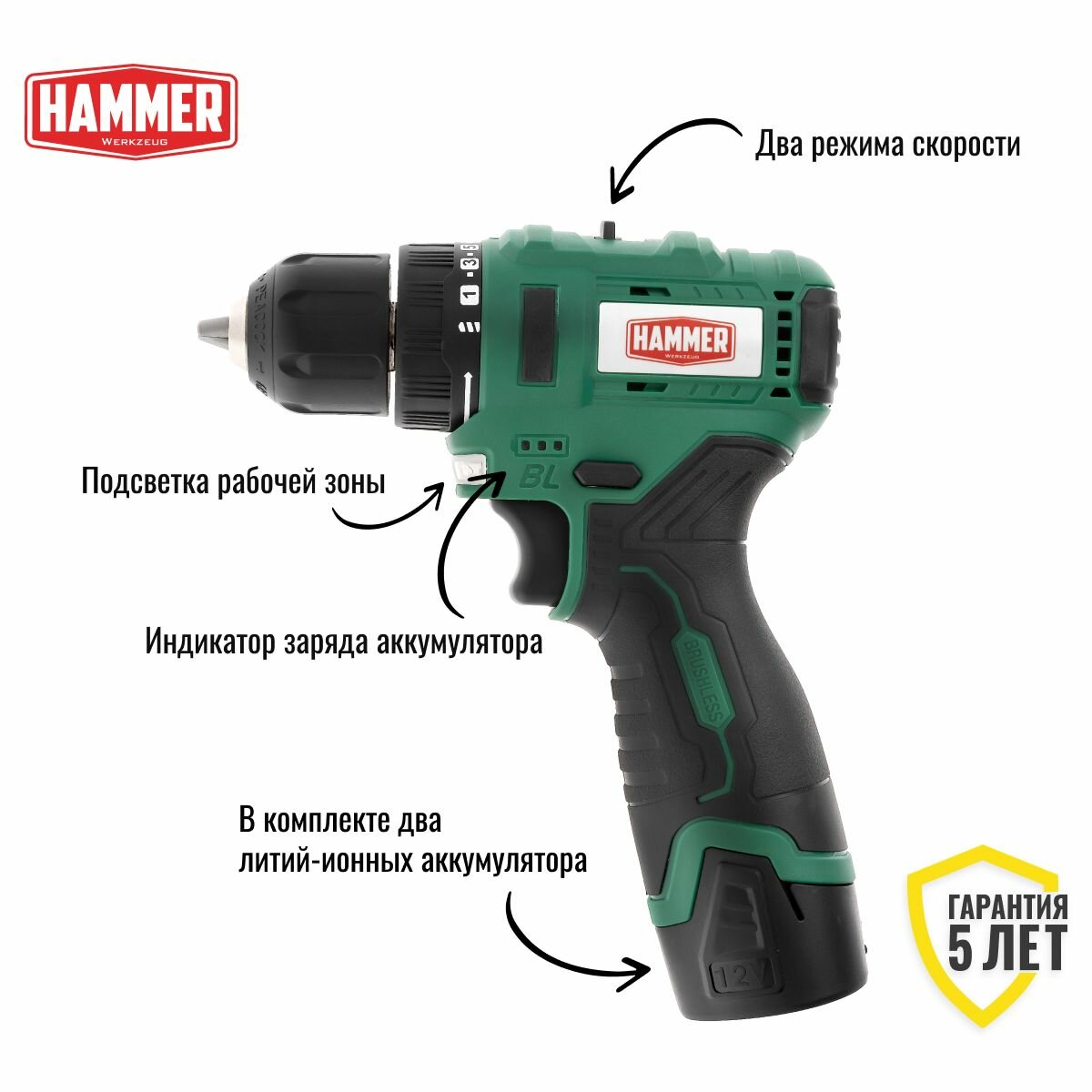 Дрель-шуруповерт Hammer ACD12BL, 2Ач, с двумя аккумуляторами