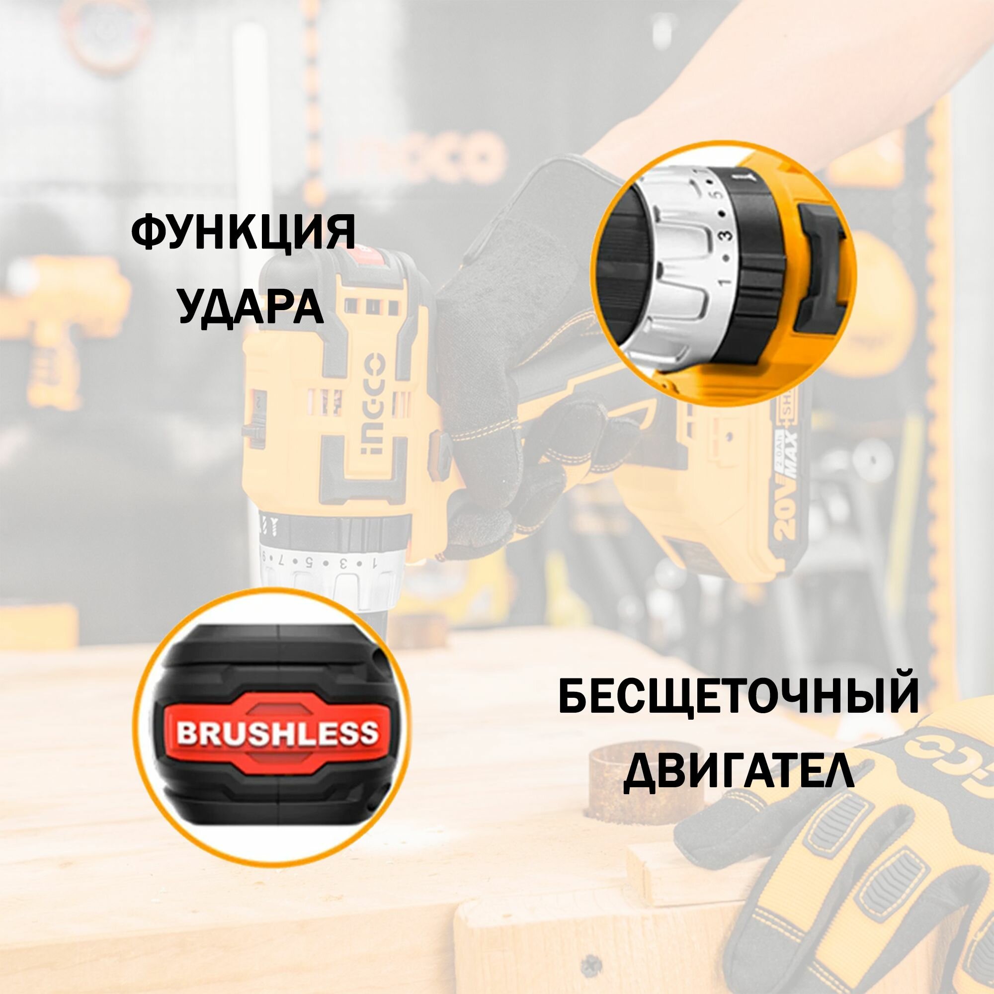 Аккумуляторный бесщеточный импульсный шуруповерт INGCO INDUSTRIAL CIRLI2002 электроинструмент, подарок на день рождения мужчине, любимому, папе, дедушке, парню