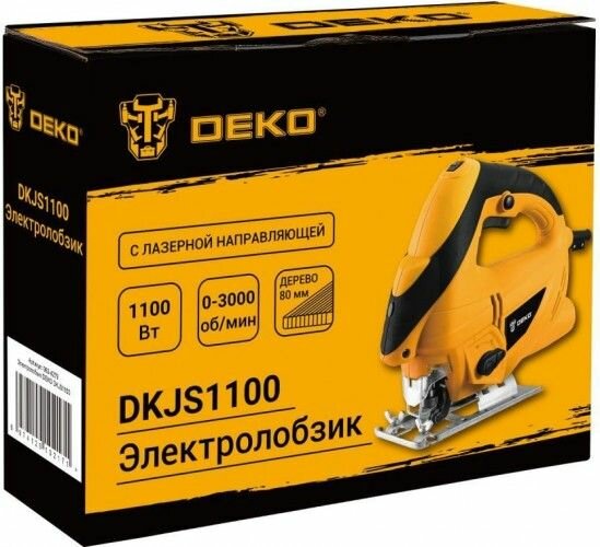| Комплектация | электролобзик DEKO DKJS1100 (1 шт.), лезвие (1 шт.), шестигранный ключ (1 шт.), параллельный упор (1 шт.) |