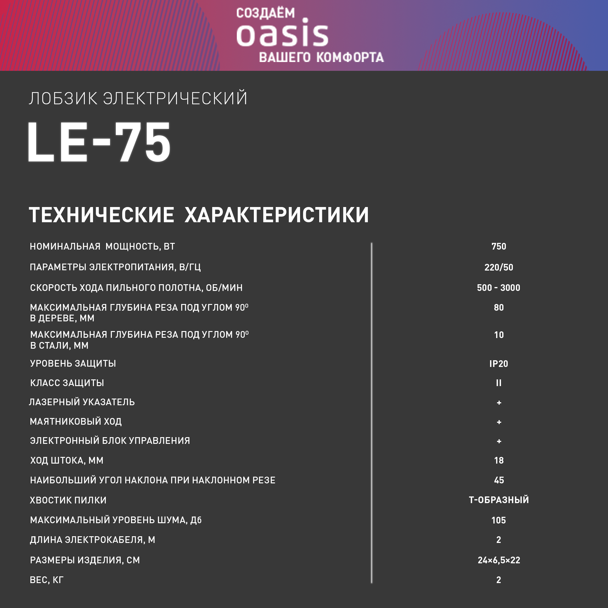Oasis LE-75 Электролобзик .