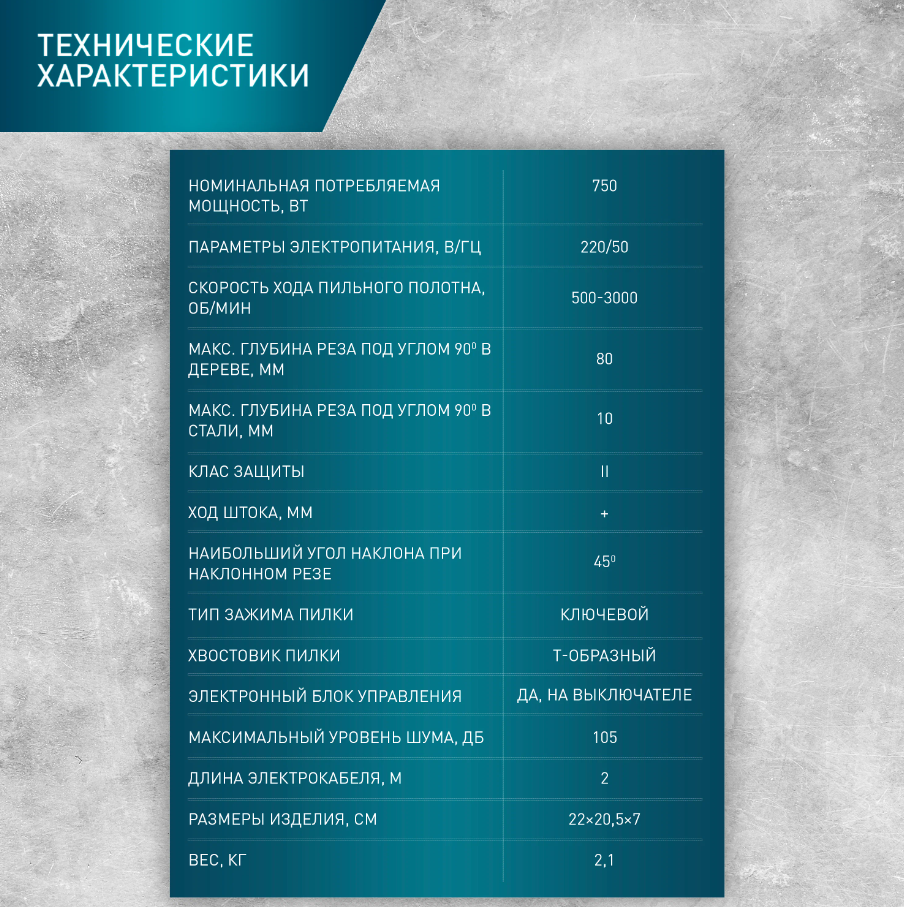 | Частота движения пилки | 800 - 3000 ходов/мин |