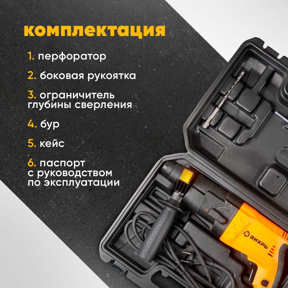 Перфоратор Вихрь П-650к кейс