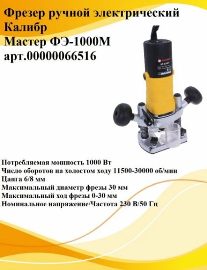Купить Фрезер по дереву электрический/ Фрезер ручной "Калибр Мастер ФЭ-1000М"/вертикальный, 1000 Вт, макс. скорость 30000 об/мин, макс. глубина фре-ия 30 мм