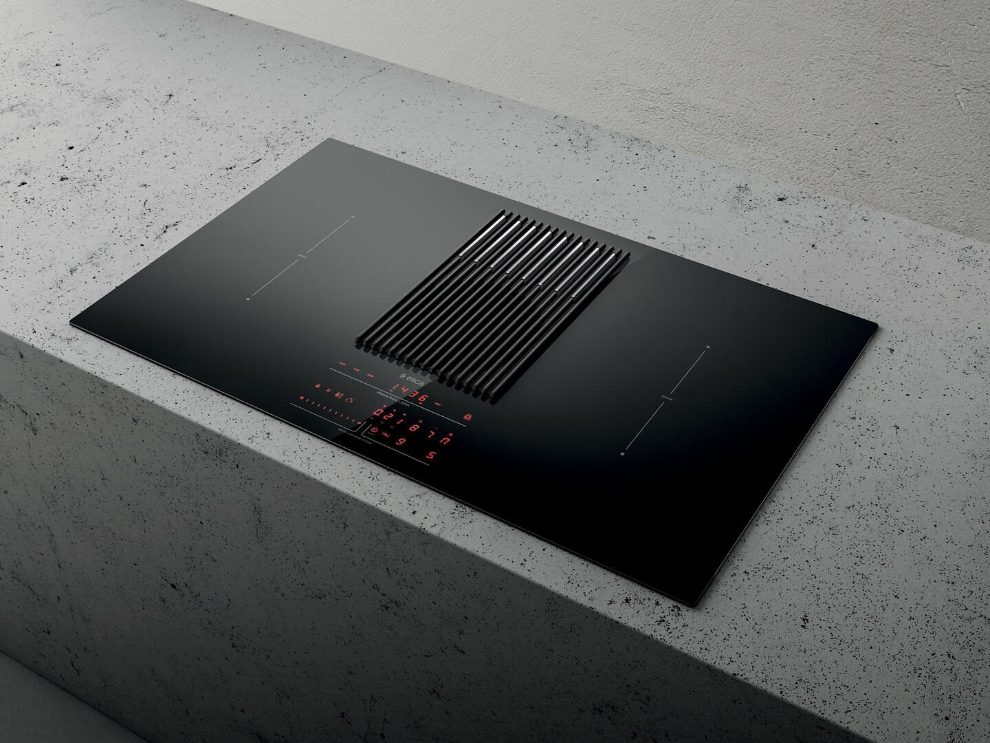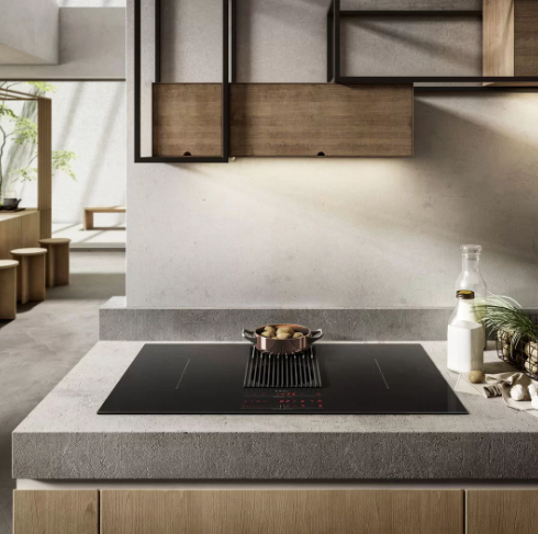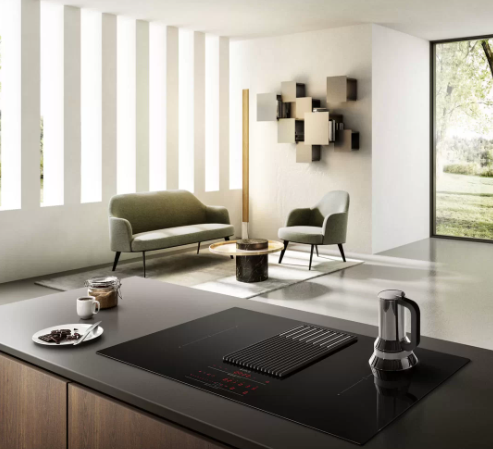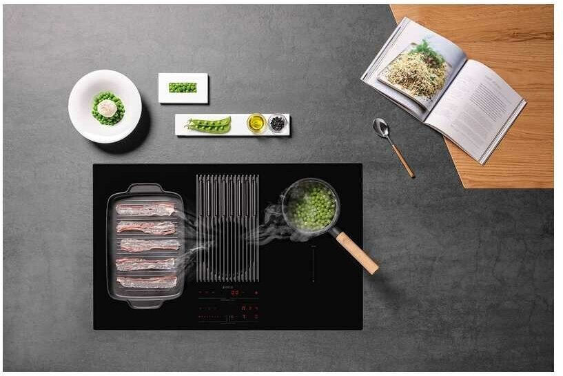 Elica Встраиваемые индукционные панели ELICA/ индукционная, 83 см, 4 зоны приготовления, 2 объединяемых зоны, встроенная вытяжка, отвод, 630 м3/x, алюминиевый жироулавливающий фильтр, черный цвет