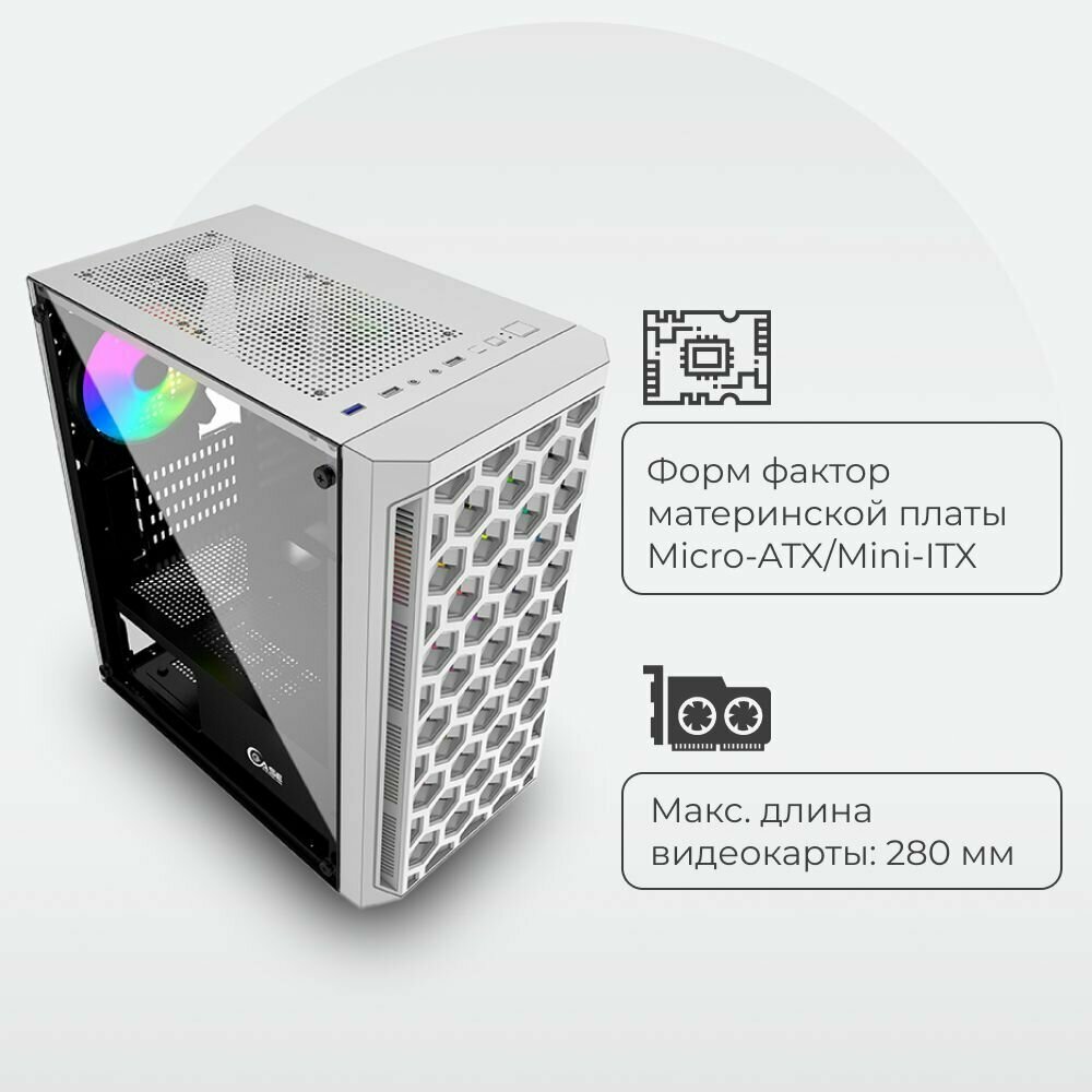 Powercase Корпус Powercase CMIMTW-L3 Mistral Micro T3W, Tempered Glass, Mesh, 2x 140mm + 1х 120mm 5-color fan, белый, mATX (CMIMTW-L3)