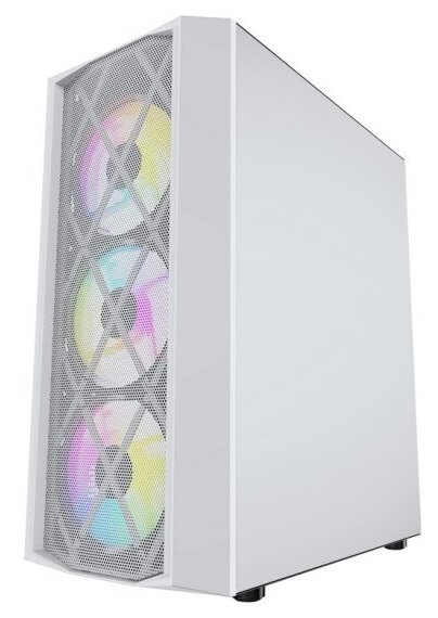 Powercase Корпус CMRMW-L4 Корпус Rhombus X4 White, Tempered Glass, Mesh, 4x 120mm 5-color LED fan, белый, ATX CMRMW-L4