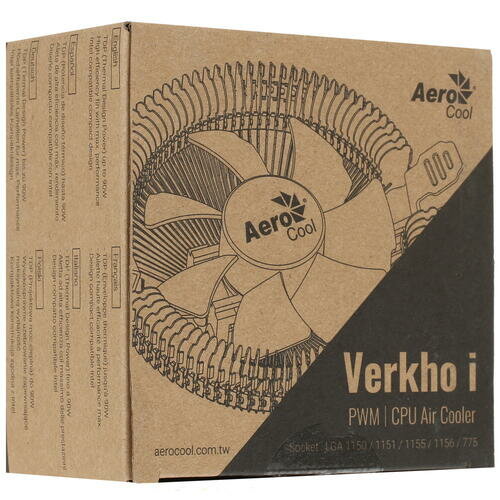 Купить Вентилятор для процессора Aerocool Verkho i Socket 775/115X/1200, 80mm, 2500rpm, 29.7 дБА, 90W, PWM 4-pin, Al (Verkho i)