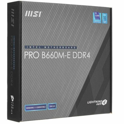 Материнская плата mATX MSI PRO B660M-E DDR4 (LGA1700, B660, 2*DDR4(4600), 4*SATA 6G RAID, M.2, 2*PCIE, 7.1CH, Glan, 2*USB 3.2, HDMI/VGA)
