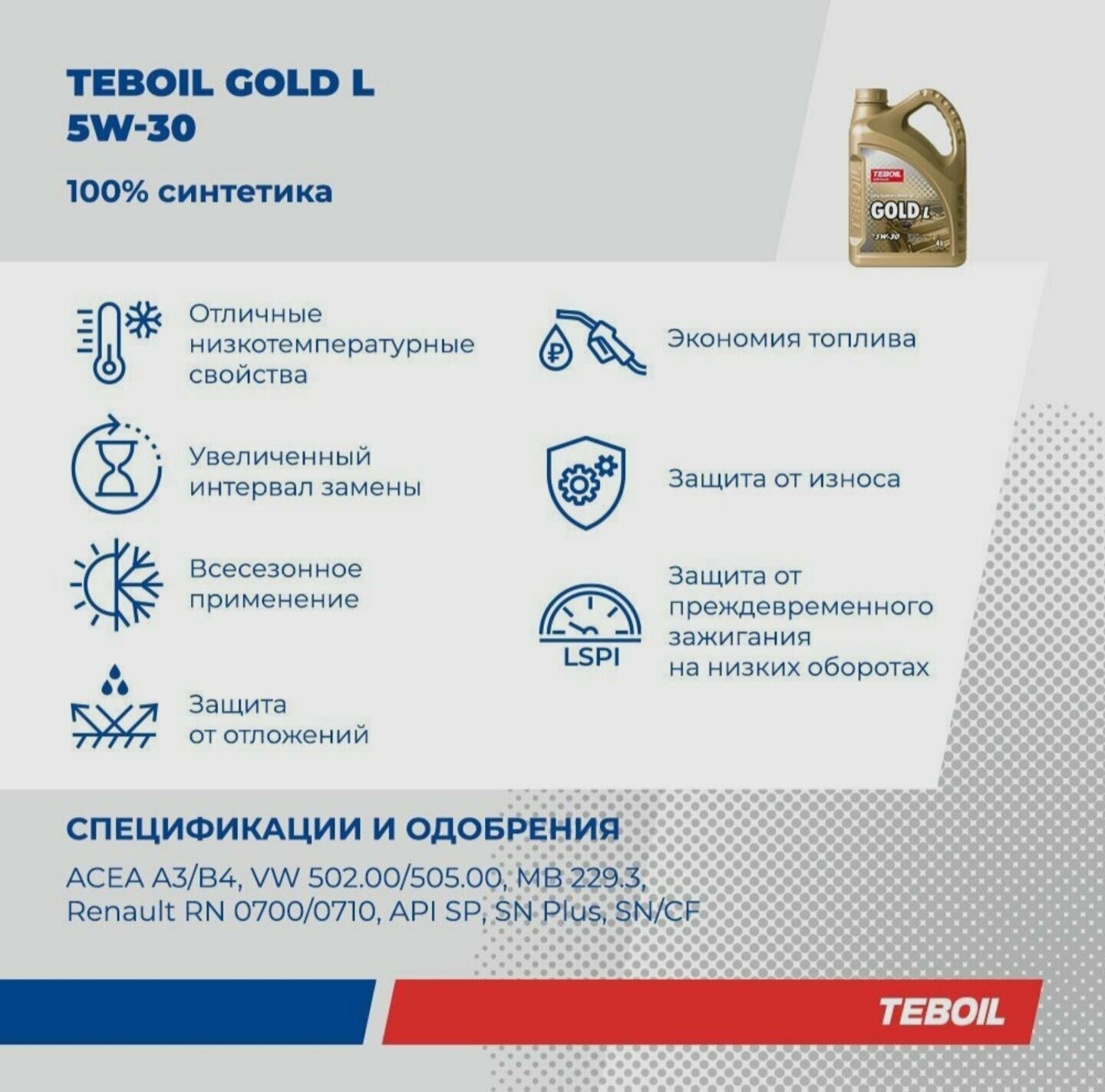 СохранитьTeboil 5W-30 Gold L 1Л (Синт. Мотор. Масло) интересное: