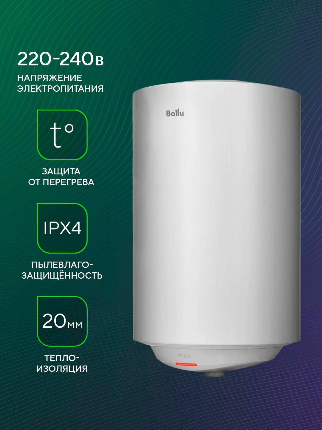 Купить Водонагреватель накопительный Ballu BWH/S 30 Legacy