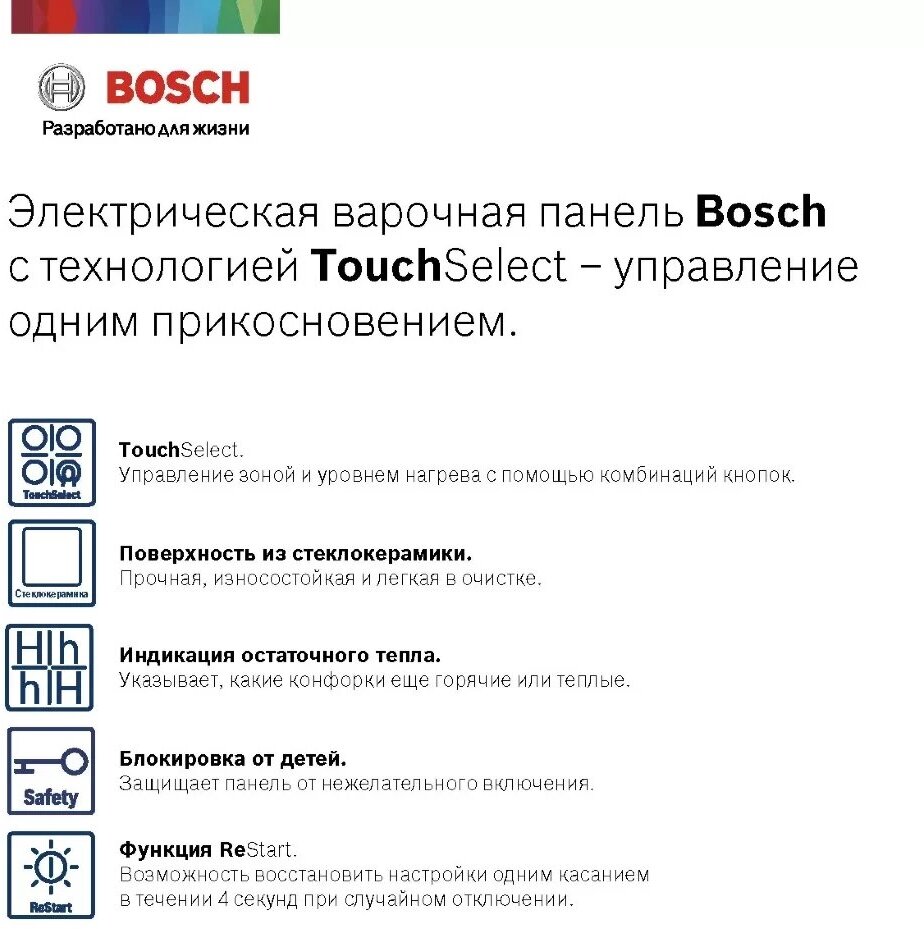 СохранитьЭлектрическая варочная панель BOSCH PKE611BA2E, цвет панели черный, цвет рамки черный интересное: