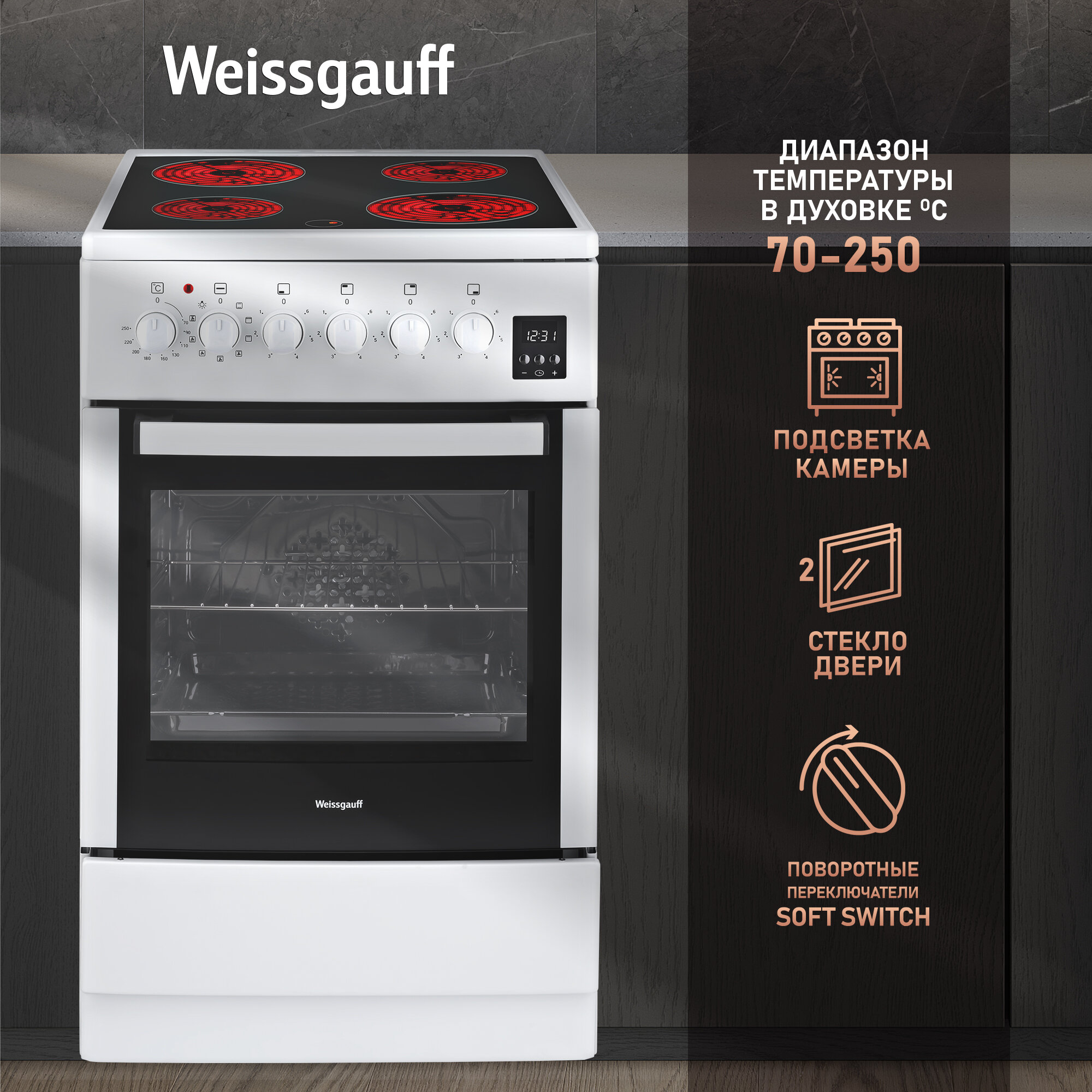 Ниже Вы можете прочитать отзывы на Электрическая плита Weissgauff WES E2V16 WE 3 года гарантии, Объем 50 литров, Технологичные поворотные переключатели Soft Switch, Термостат духового шкафа, ознакомится с подробными характеристиками, посмотреть интересные обзоры и фотографии на Электрическая плита Weissgauff WES E2V16 WE 3 года гарантии, Объем 50 литров, Технологичные поворотные переключатели Soft Switch, Термостат духового шкафа.
