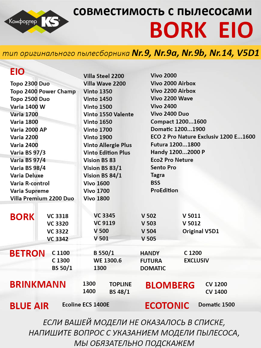 Пылесборники синтетические EO-04 для EIO, BORK (V5D1), упаковка 4шт. интересное: