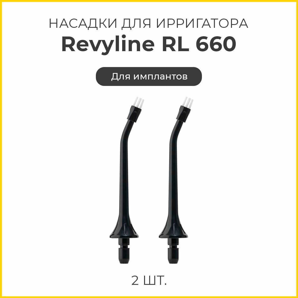 Сменные насадки для ирригатора Revyline RL 660/610 для имплантов, черные, 2 шт.
