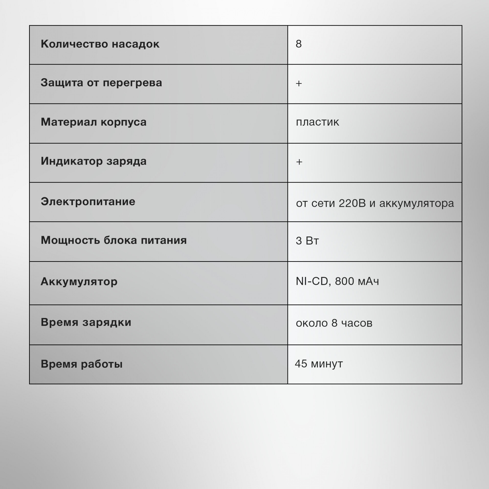 | Плюсы: | Острые лезвия. Большой набор насадок 8 шт. Стильная. Щетка для очистки лезвия в комплекте. |